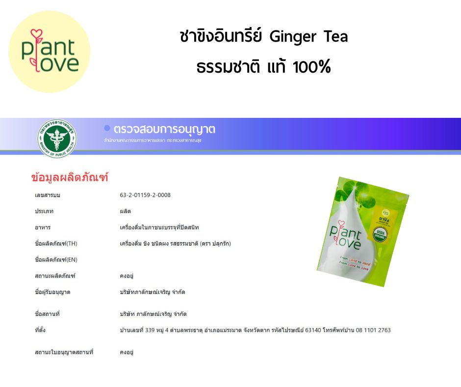 ชาขิงอินทรีย์ USDA ตราแพลนท์เลิฟ