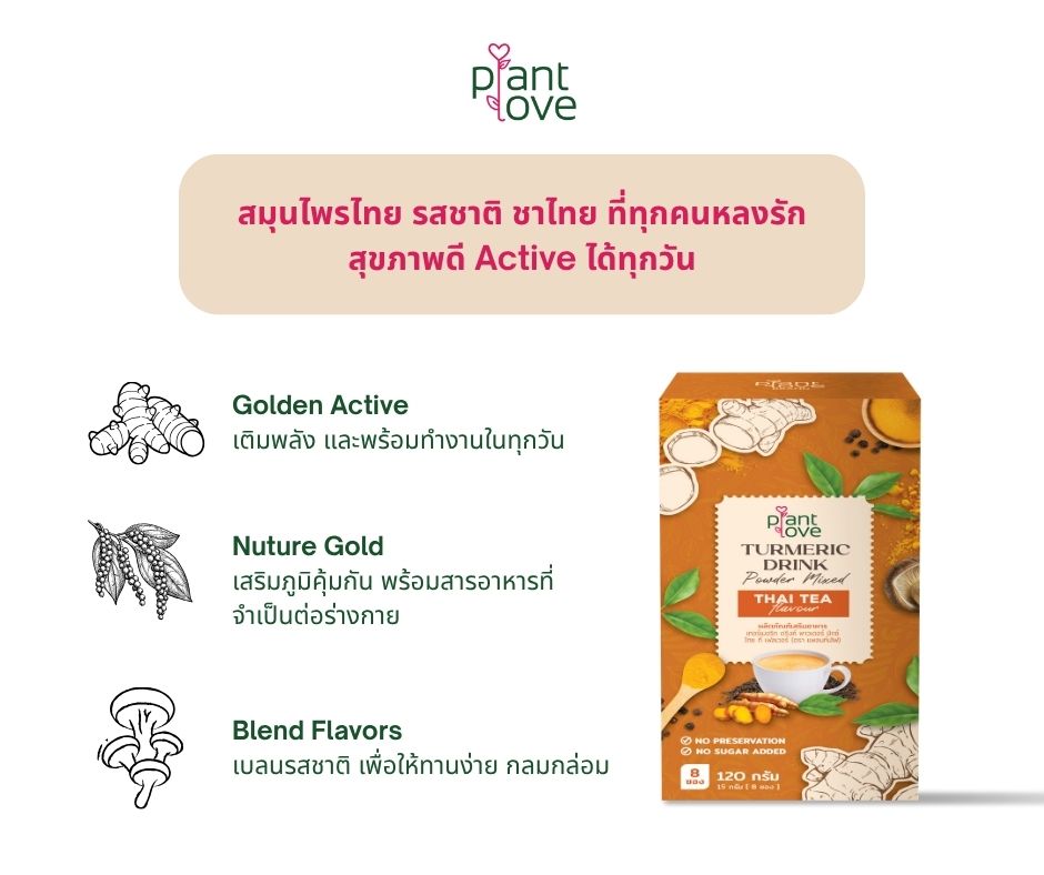 Turmeric Drink Powder mixed THAI TEA Flovour (Plant love)