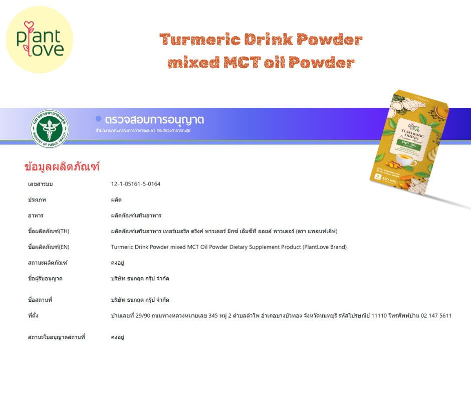 ผลิตภัณฑ์เสริมอาหาร เทอร์เมอริก ดริงค์ พาวเดอร์ มิกซ์ ไทย ที เฟลเวอร์